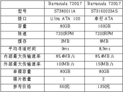 这次评测的两款硬盘都来自希捷,均为Barracuda 7200.7,只是型号不同,其中串行硬盘是希捷推出的新一代产品。具体参数如下: