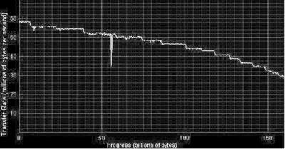 并行ATA(上)和串行ATA硬盘传输速率曲线