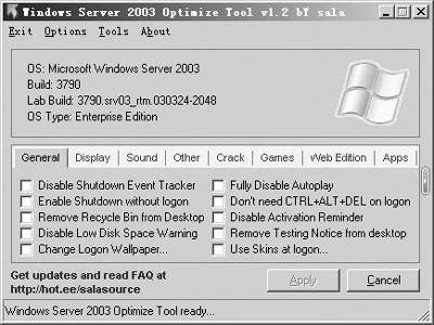 经过Windows Server 2003 Optimize Tool的一番“调教”,Windows Server 2003会变得服服帖帖,使用起来也顺手多了。