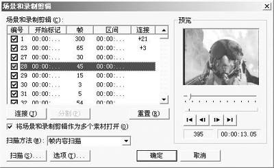 如果场景分割过细,你可在场景列表中选定某个场景,然后按“连接”按钮将它和前一段合并。
