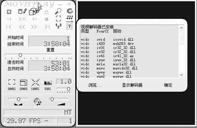 MoviePlay可以帮助我们查看播放AVI、MPG等媒体文件的编码格式,而且支持查看系统中已经安装的解码器。如图2所示,点击“>>”即可在弹出的对话框显示系统中已经安装的视频、音频解码器等详细信息,这样可以方便用户了解为什么有的媒体文件不能播放的原因。