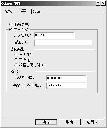 网络共享在协同办公条件下得到了广泛应用,可是如果你将访问类型设为“完全”,那么电脑中的资料就存在被恶意删改的可能。建议朋友们根据不同的访问需求对共享文件夹进行权限或密码设置。以Windows 98为例,具体操作如下:用鼠标右击需要加密的文件夹,在弹出的菜单中选择“属性”,进入“共享”选项卡,在“访问类型”栏中勾选“根据密码访问”单选框,然后设置密码即可(图1)。这样访问者必须输入密码方可进行网络资源的共享。