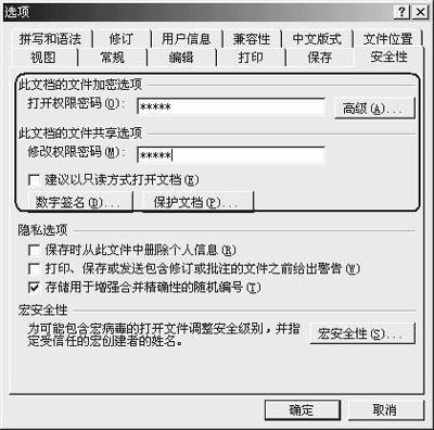 目前很多公司的文件都是以Word文档的方式存放的,文档的加密就显得非常重要。在Word 2002中,依次进入“工具→选项→安全性”即可进行文档文件的加密(图4)。