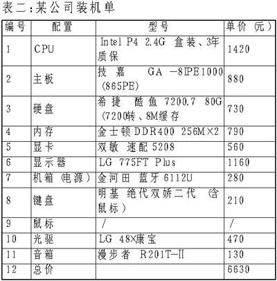 从上面装机单上我们可以看到一些商家不规范的写法,如P4 2.4G应为P4 2.4GHz,硬盘的80G应为80GB,M应为MB等。
