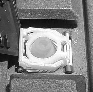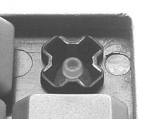 首先从外观上进行比较,除了个别很低劣产品外,你是无法从外观上觉察出两者真正的区别的。接着就是对两者进行拆卸比较,图2是真正的笔记本电脑键盘,仔细观察会发现笔记本键盘的内部是由一个成X(交叉)形的支架和中间的橡胶按钮组成的。这就是为什么真正的笔记本电脑键盘键程较短,但触感舒适柔软的原因。然后再来看看低价仿笔记本电脑键盘的内部,图3是其真正的结构,就会发现这种支柱结构与普通电脑键盘的结构是大同小异的。唯一的区别就是为了缩短仿笔记本电脑键盘的键程,支柱的高度进行了压缩降低处理,但是除此之外没有任何其他技术的添加,也就是说除了键程较短外,低价的仿笔记本电脑键盘与普通的电脑键盘是别无二致的。这也正是低价仿笔记本电脑键盘在使用时触感过硬过紧并十分不舒适的主要原因。当然,经过这样简单的处理,仿笔记本电脑键盘在成本上是没有太多增加的,30元的超低价位或许只能算是价格适中而已。