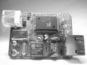 由于USB网卡是外置式的,安装时不会占用机箱内的插槽,它所具有的热插拔的优点使安装更为方便,而它的体积极为小巧,携带非常方便。拆开USB网卡的外壳,我们可以发现它的内部结构(图9)与内置网卡基本相同。