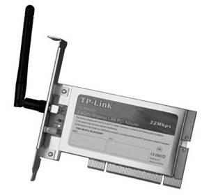 TP-LINK的TL-WN250+ PCI无线网卡(图13)完全兼容IEEE 802.11b标准,传输速率可达到22Mbps。该网卡能在恶劣环境中以及进行长距离传输时动态调整速率,保证无线连接的可靠性,并提供高达256位的WEP加密,比传统IEEE 802.11b设备具备更高的数据传输安全性。