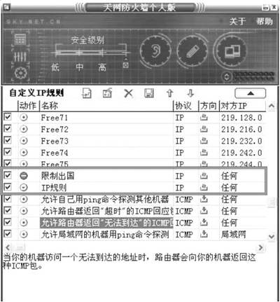 大家都知道,教育网和科技网是按流量计费的。如果从一些国外的站点下载了软件或者电影,势必要付出高额的国际流量费。本文将给大家介绍如何使用天网防火墙控制国际流量,笔者使用的是天网防火墙个人版V2.50,在WinXP下测试通过。