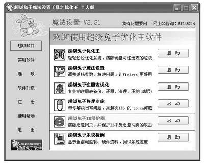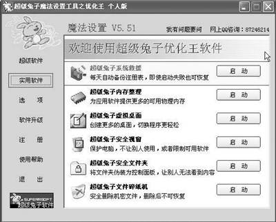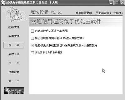 “超级兔子优化王”:它不但能优化系统还能清理垃圾,还能对常用的其他软件进行优化设置。