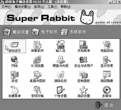 优化系统能挖掘Windows更多的性能,使系统更稳定、安全,这样除了可以带来更快的速度外,也让自己学到不少电脑的相关知识。初学者认为这是做高手的标准。想体验做高手的感觉?超级兔子魔法设置让你得偿所愿!