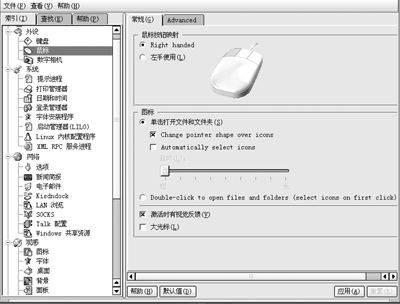 KDE控制中心是由许多配置模块组成的(图3),实际上Kcontrol Center也是调用了Konqueror浏览器将各个模块连接在一起,由KDE基础包提供的标准配置模块列。如果安装了其他第三方软件,可能会有附加的模块。查看模块帮助文件的方法是:在控制中心列表选取该模块,然后按帮助按钮。