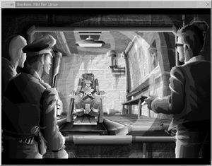 记得福尔摩斯探案的惊险刺激吗?试试HOPKINS FBI游戏,你就会对Linux中的游戏有全新的认识(图8)。朋友们可以在http://www.linuxeden.com/download/winapps/hopkins-pdemo-1.00.tar.gz下载到该软件。根据你的系统有无声卡,可以在config.ini中加入语句sound=yes或者sound=no。另外要注意的是,从http://www.linuxeden.com/download/winapps/patch-pdemo-1.02.tar.gz下载补丁并安装后才能正确执行。