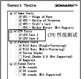 对于支持DirectX 9.0的显示卡我们可以使用3DMark03进行测试(图4)。由于它支持DirectX 9.0,所以诸如GeForce FX系列和Radeon 9600系列等在得分上将有相当大的优势。作为3DMark2001 SE的升级版,3DMark03在设计时尽量让最后的测试结果与处理器的性能无关,因此作为对整体性能评估的一个补充,Futuremark在测试中补充了以软件方式(纯粹CPU机能)渲染的3D场景测试项目(即CPU性能测试,图5)。通过以软件方式调用DirectX来执行4个主要测试项目,从而给出一个处理器性能评估,但要注意的是,此时系统平台带宽对这一测试结果影响会非常严重。此外CPU最终测试分数将受到显卡像素着色效能的轻微影响。因此,如果使用3DMark03来进行不同处理器的对比测试,那么必须采用相同的显卡、驱动程序和操作系统,这样得出的CPU测试成绩才有可比性。