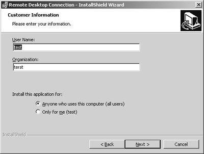 在这一步里面我们完成工作站的配置。工作站必须安装网卡且保证能与终端服务器连通,然后安装终端服务的客户端软件,把C:\Windows\System32\Clients\Tsclient(此处的C:\为系统驱动器录)下的Win32目录共享或直接复制到工作站,再运行此目录下的setup.exe文件,指定一个安装目录,完成客户端应用程序的安装。