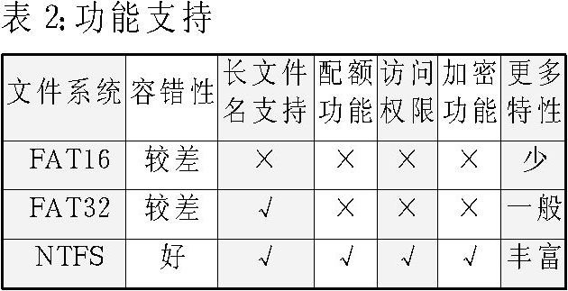 首先我们来看一下表1、2、3,它们从各个方面对NTFS/FAT32/FAT16的基本情况及支持的功能进行了综合比较。