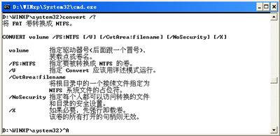 Windows 2000/XP/2003提供了分区格式转换工具Convert.exe,通过它可以方便地将分区转换为NTFS格式。