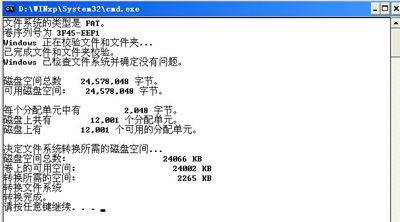 如果单击“是(Y)”按钮,将会弹出命令提示符窗口并开始进行分区转换(图4),此操作一般耗时较长,须耐心等待。