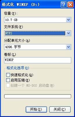 在Windows 2000/XP/2003系统下,操作的方法同Windows 9x一样,只不过弹出的“格式化”窗口中的选项不一样(图6),而且在“文件系统”下拉框中,根据每个分区的不同情况,可以选择“NTFS、FAT32、FAT”这3种格式中的一种进行格式化。如果磁盘大于4GB,“FAT”将无法选择;如果磁盘大于32GB或小于512MB,“FAT32”将无法选择。除非是软盘,否则任何情况下NTFS都可选择。根据需要设置好其他选项后便可按“开始”按钮进行格式化操作了。