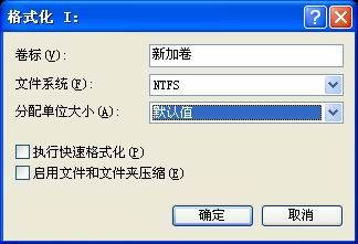 另外,如果在Windows 2000/XP/2003系统下,还可以利用“磁盘管理工具”对分区进行格式化操作。首先运行此工具,然后选择欲格式化的分区,点击鼠标右键选择“格式化”,弹出如图7所示的“格式化”对话框,根据需要进行设置后,点“确认”按钮即可。