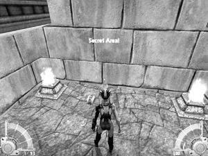 先下到峡谷里去,在右边的尽头发现第一个隐藏地点。原路返回,从2层进入城堡。来到一个T型的岔路口,从左边的门来到外面,回头干掉房顶上的太空骑兵,跳上房顶,发现右边的隐藏地点。回到城堡里的走廊,和KYLE一同前进,一直再杀到外面,解决地面上的重冲击枪手。沿小河一路前行,跳着突岩前进。前面的峡谷被盘旋的钛轰炸机封锁着。进入右边的建筑,辗转来到内院,进入右边的门一直前行,在炮台外停住,KYLE去解除门锁,你则要负责对付一个REBORN。