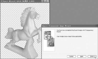 4.将它另存为PNG文件后,即会出现“You have now completed...”(你的图像已经可以在线上使用)的提示,单击“Finish”按钮,如图3,这样就完成图像去背了。