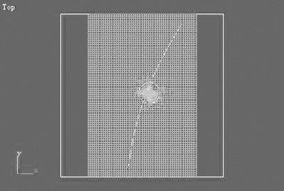 在3DS MAX中制作天空的方法很多,由于在本例中使用了大量的粒子,所以我们选择最节约资源的方法来制作天空。回到建立命令面板,在顶视图中创建一个长和宽均为1500,段数都为1的平面。在左视图中将新创建的平面沿Y轴向上移动一些,接着使用旋转工具沿Z轴旋转1度左右,结果如图4所示。