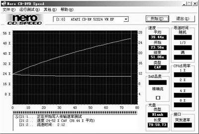 此款测试软件是常用的光存储产品测试软件,它能测试出光存储产品读/写盘的工作方式、真实速度、随机寻道时间以及CPU占用率。