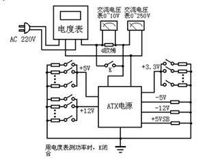 在电源采用一个或两个风扇,或者改变风扇的位置的情况下,改变电源散热片的面积, 测试电源在不同负载下电源功率和温度的关系,就可以找到增大电源功率的方法。因笔者的实验条件所限,准确测量电源负载的功率比较困难,而测量电源的输入功率较为方便和准确,电源的输入功率减去电源的损耗就是电源的输出功率,故本实验均以测量输入功率为准。笔者采用了两种方法,图1是两种测量方法的电路图,第一种方法采用电阻法,在电源的交流输入端串联一个大功率的4Ω标准电阻,测量电阻上的交流电压V2和市电的交流电压V1,就可以算出电源的输入功率VA: VA=V1×V2/4。视在功率VA再乘以功率因素才是有功功率W,在业余的条件下测试功率因素比较困难,加之实验时的负载都是纯电阻,功率因素接近于1,故近似地把视在功率作为有功功率看待。第二种方法:采用电度表进行测量,有功功率W=60000×n/K。式中n为电度表铝盘每分钟转数,K是电度表常数,为每千瓦小时转数,在电度表铭牌上可查到。此法的优点是比较准确,但测量时要测量每分钟的转数,比较繁琐。对比两种测试结果,其误差小于4%,符合测试要求。