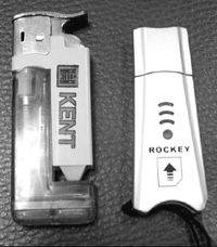 在闪存上集成无线电技术,并配备了一个小型的遥控器,这样的产品非常具有创意。蓝科的这一产品分为闪存和遥控器两部分:闪存采用USB1.1的接口标准,看上去跟其他的闪存完全一样,除了写保护开关以外没有任何按钮。尾部有一根线,起初以为是挂绳,看仔细一点原来是一条天线,用来增强信号的接收能力,而尾端有个卡位才是插入挂绳的;遥控器非常小巧,厚度只有5mm左右,功能简单而实用。此遥控器具有音量控制、鼠标、局部放大、整体放大、拉窗模式、翻页、行突出等功能。这是一款专门针对办公教学、会议等需要投影演讲场合的产品,令投影变得更加生动和容易使人接受,更能让用户专注于演讲。遥控器的有效距离为3米左右,基本上能满足投影演讲的需求了。