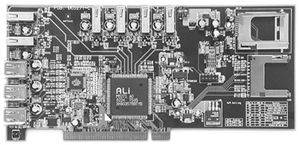 随着各种数码产品走进我们的生活,主板上需要连接的设备也越来越多。除了使用USB接口的设备以外,还有许多数码产品例如DV是使用IEEE1394(俗称“火线”)接口的,还有各种存储卡,例如SONY的Memory Stick(记忆棒)以及SD卡等。即使是目前最新的主板,也不能全部支持以上的各种设备,更何况很多人还在使用没有USB接口的老爷主板呢。这款多功能接口卡只需占用主板上的一条PCI插槽,就能提供以上所有接口功能:6个USB2.0接口、3个IEEE1394接口、Memory Stick读卡器以及SD卡读卡器!卡上却只有一颗控制芯片,这是采用ALi(扬智科技)的M5271芯片来实现的,通过这一强大的整合芯片,不但把MS、SD、USB2.0及IEEE1394这四个分属于不同领域的接口统一了起来,还大大节约了成本和空间,相信会成为外设接口卡设计的一大趋势。