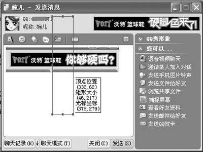 QQ2003 Ⅱ虽然增加了直接发送图片的功能,可是用户如果在屏幕上看到什么漂亮的图片想和对方分享,难道还要把显示器抱到对方的面前?用抓图软件吧,又太麻烦!好在这个版本的QQ增加了屏幕图像的抓取回贴功能,只要选择了“你可以”菜单下的“捕捉屏幕”功能,用左键选定捕捉的图片范围,根据自己的需要在合适位置上设置大小后,直接双击捕捉的图片区,对方就能看到你屏幕上的图像了(图2)。
