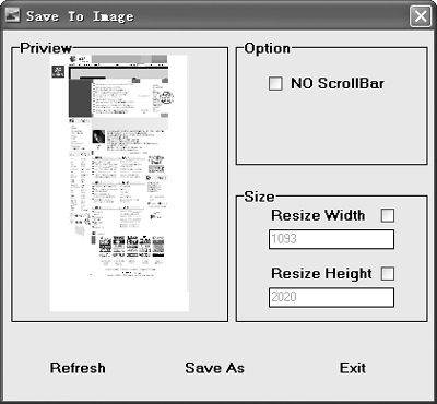 点击“保存”按钮旁边的下拉箭头,在弹出的保存菜单里选择“Web To Image”,进入“Save to Image”界面。“Option→NO ScrollBar”项可以控制是否抓取浏览器的滚动条,注意该功能只有在改变了图片的默认抓取尺寸时才能生效。在“Size”项下我们能够重新设定抓取图片的宽度和长度。笔者在使用过程中发现并不是所有网页都可以抓取,点击“Refresh”按钮后仍然能够在“Preview”框中显示图像的才可抓取。在没有抓图软件的情况下抓取网页全貌,够方便吧。