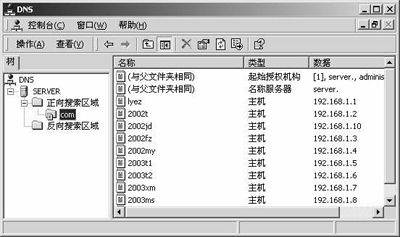 DNS服务就是当我们在浏览器中输入主机的域名时,DNS服务器会自动将域名转换为对应的主机IP地址,并将链接指向该地址对应的网页,这样就可以使我们通过简单、易记的域名而不是枯燥的IP地址来访问Web主机。下面就让我们配置这样一台DNS服务器,操作步骤为: