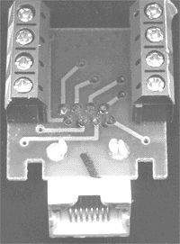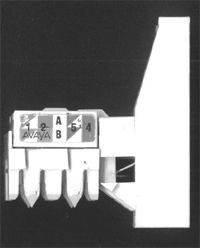 笔者索性把新旧两个网线插座的内部接线端拆卸下来,将原有正品网线插座与新的网线插座进行对比。同时,新的插座具有开放的印刷线路板,可使用欧姆表测量并判断针脚连线的性能。在一番对比和测试后,笔者发现在这种印有“福田”标记(图2)的新插座内部,对应于水晶头连接的8根针脚(图3)的接线端排序为“1-橙白,3-蓝白,5-绿白,7-棕白、2-橙、4-蓝、6-绿、8-棕”。