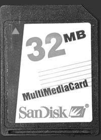 由于传统的CF卡体积较大,所以Infineon和SanDisk公司在1997年共同推出了一种全新的存储卡产品MultiMedia Card卡(简称MMC卡)。MMC卡的尺寸为32mm×24mm×1.4mm(图4),比普通的SmartMedia卡稍厚,但体积比SmartMedia卡更小。MMC卡采用7针的接口,主要应用于数码相机、手机(例如西门子MP3、手机6688)、和一些PDA产品上,价格相对较贵。