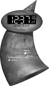 现在网上形形色色的闹钟软件也不鲜见,但是这款“闹钟”有它的特色,不仅是外表好看,而且那动听的音乐更是让你对它痴迷。在程序组中对应的就是“Alarm Clock”,启动后的界面如图所示。使用很简单,窗口的最上面是一个表,同时还可以看到当天的日历,下面就是闹钟的时间,我们可以在窗口中右击,在弹出的快捷菜单中选择“Edit Alarms”,然后设置闹钟的时间即可,不过在如图所示的窗口中我们还要选中相应的时间点,选中之后程序才能在设置的时间打开门铃。