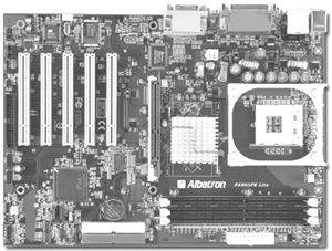青云(Albatron)品牌的产品在国内市场上出现的不多。这款848P主板做工精良,用料扎实,板基采用蓝色PCB板。最特别的是主板上提供了3根DIMM插槽,但是848P只提供最大2GB内存容量,所以3根内存插槽多少有点浪费。主板上采用了ALC655音效芯片,此外还提供了一组S/PDIF光纤音频信号输出的接口以满足一部分对音质要求较高的用户。主板上南桥采用的是ICH5芯片,提供了两个ATA100接口和两个SATA接口。此外,还有一款与其板型一样的PRO版,不同就是多出了一块3COM 100M网络控制芯片。