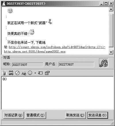 要进行这样的“QQ模仿秀”需要用到一个工具软件QQMM2002,软件大小1825KB,中文界面,可以应用于Win9X/NT/2000/XP系统,下载地址:http://www.cpcw.com/download/soft/40/totopq2003.exe。