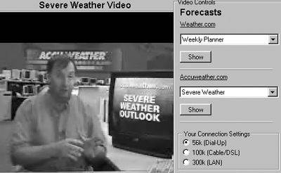 软件依靠http://www.weather.com和http://www.accuweather.com这两个权威的气象网站,以视频方式播放各种天气预报,例如灾害天气警报、天气与健康、体育赛事天气以及世界其他地区的天气情况等等,只要在右边选择收看的项目,点击“Show”按钮,就会由专家用纯正的英语进行解说(图2),这就使你在学习气象知识的同时,又能得到英语听力训练,感兴趣的朋友不妨试试。