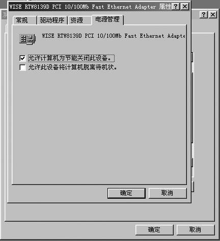 仔细地查看系统设置,发现在网卡的属性中有一个“电源管理”的选项卡(如图),在“允许计算机为节能关闭此设备”前的复选框前的小钩是选中的状态。去掉勾选状态,再无此现象发生。想来是选中了此选项,而1号机又是打印服务器,一般情况下无人长时间操作,因此电脑经常会自动进入省电模式,关闭网卡,从而造成网络无法连通的现象。