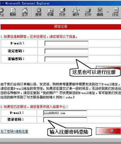 ②选择“结账”就进入登录界面,输入邮件地址和密码登录,如果还没有注册就在上面注册。