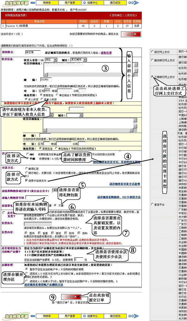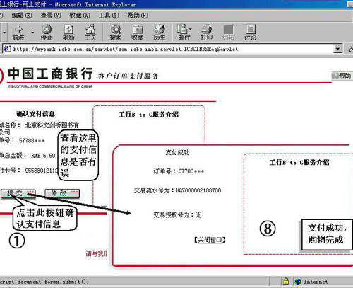⑦确认支付信息,特别是查看一下付的款额是否就是你购物所需款额。