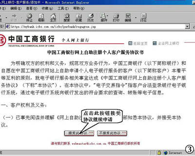 ③阅读工行网上自助注册个人客户协议并点击“接受此协议”按钮。