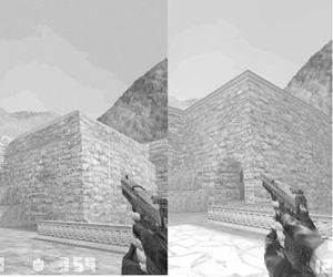 前言:在数次跳票之后,CS1.6正式版本终于再次杀入竞技游戏市场。慢工出细活,1.6版本相对于1.5版本有了相当大的改变,甚至可以用另一个游戏来形容两者之间的差别。从这里也可以看出VALVE并不满足CS目前所获得的成就,仍在不断地创新和追求更高的目标:)。现在,我们就来研究一下新版本地图上的变化(下文中图片均为1.5版与1.6版对照,前者为1.5版)。