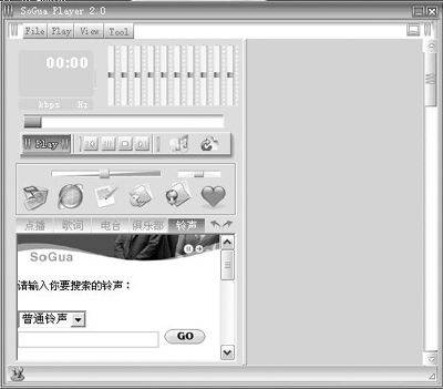 随着移动通讯服务的不断增加,与手机相关的服务越来越多,SoGuaPlayer也考虑到这个目前比较热门的功能,利用自己网站自身的优势,将手机铃声下载服务整合为一体,你可以轻松为自己的宝贝手机下载到合适的音乐,当然这是一项需要付费的服务。