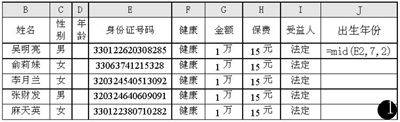1.首先把Word中的客户档案全部复制到Excel 2002中,生成一个数据库文件。然后在数据库文件中新建一列,并命名为“出生年月”。因为身份证号有15位和18位,为了计算方便,先对身份证号进行排序。