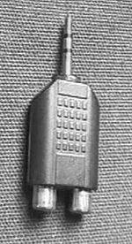 电器市场上的电视频道增补器种类很多,挑选的重点是音、视频输出端口类型。由于电视频道增补器要通过VIVO显卡的“Video In(视频输入)”插孔和声卡的“Line In”插孔输入电视视频、音频信号,因此,所买的频道增补器必须要有一组视频信号输出端口和音频信号输出端口。视频信号输出端口如果是S端子(两分量视频端口)更佳,因S端子把视频信号中的亮度和色度信号分成两路独立的模拟信号,可以更好地重现色彩,提高视频图像清晰度。同时由于电视信号中的声音信号需要通过电脑的声卡“Line in”插口输入到电脑中去,而声卡“Line in”插口和电视频道增补器的音频插头是不匹配的,因此还需要另配备一个音频“莲花头”插口转声卡“Line in”插口的转换插头(图1),没有这个转换插头可就只能看哑剧了。至于电视信号射频插座、电视信号分配器、电视信号射频连接线、音频连接线、视频连接线和电视信号缆线等则可根据需要购买(有线电缆与电脑间具体距离决定长度,但不宜太长,如因电视信号缆线长度过长造成信号衰减可酌情配购信号放大器)。不到120元就可将所需配件全部搞定。