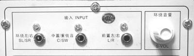 一般来说这里有好几个输入输出接口,通常情况下,厂商会标明各个接口的用途,有的用中文有的用英文,但都是一种通用的规范。在输入接口处的“L/R”代表前置声道,“C/SW”代表中置/低音炮,“SL/SR”代表环绕(后置)声道,而输出接口处的“R”代表前置右声道音箱,“L”代表前置左声道音箱,“C”代表中置音箱,“SR”代表环绕右音箱(后右),“SL”代表环绕左声道音箱(后左)。明白了这些字符的含义,在绝大多数情况下不用看说明书,也能自行连接5.1音箱。