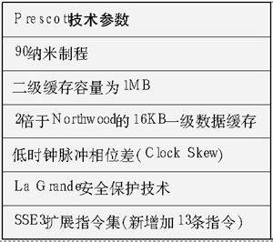 在新品发布前,厂商都会陆续透露出新品的技术参数和相关资料,但Intel在Prescott资料的公布上显得并不积极,到目前为止(包括秋季IDF)我们所得到的资料还不能完全将Prescott定格。根据Intel发布的资料,我们可以看到Prescott有如下的技术参数和对现在Northwood核心Pentium 4有所改进的地方(见表1和表2)