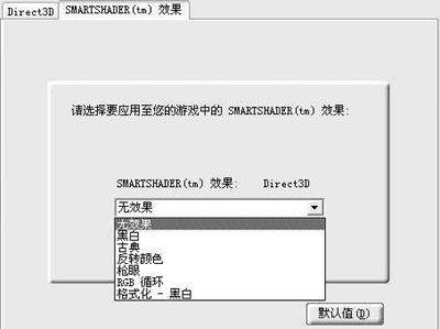 3.催化剂3.8增加了“SMARTSHADER效果”设置子选项(图2),它可以用于支持Direct3D与OpenGL的游戏中,让游戏出现特殊的画面效果。而且针对不同的镭卡亦有不同的设定,原则上是越先进的显卡可以使用的效果越多。
